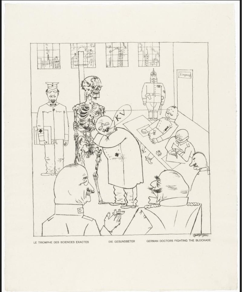 Illustration : George Grosz, Die Gesundbeter (Les guérisseurs), dessin publié dans Die Pleite, n°3, avril 1919.